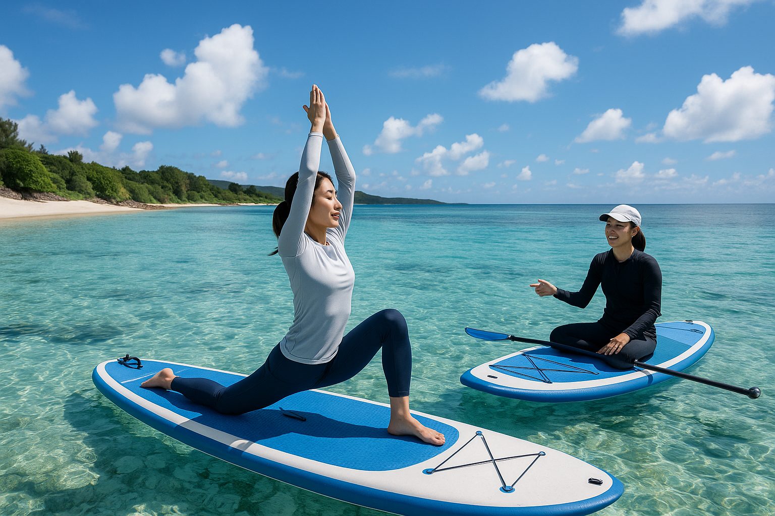 SUPボードの上でバランス感覚を養いながらリフレッシュ