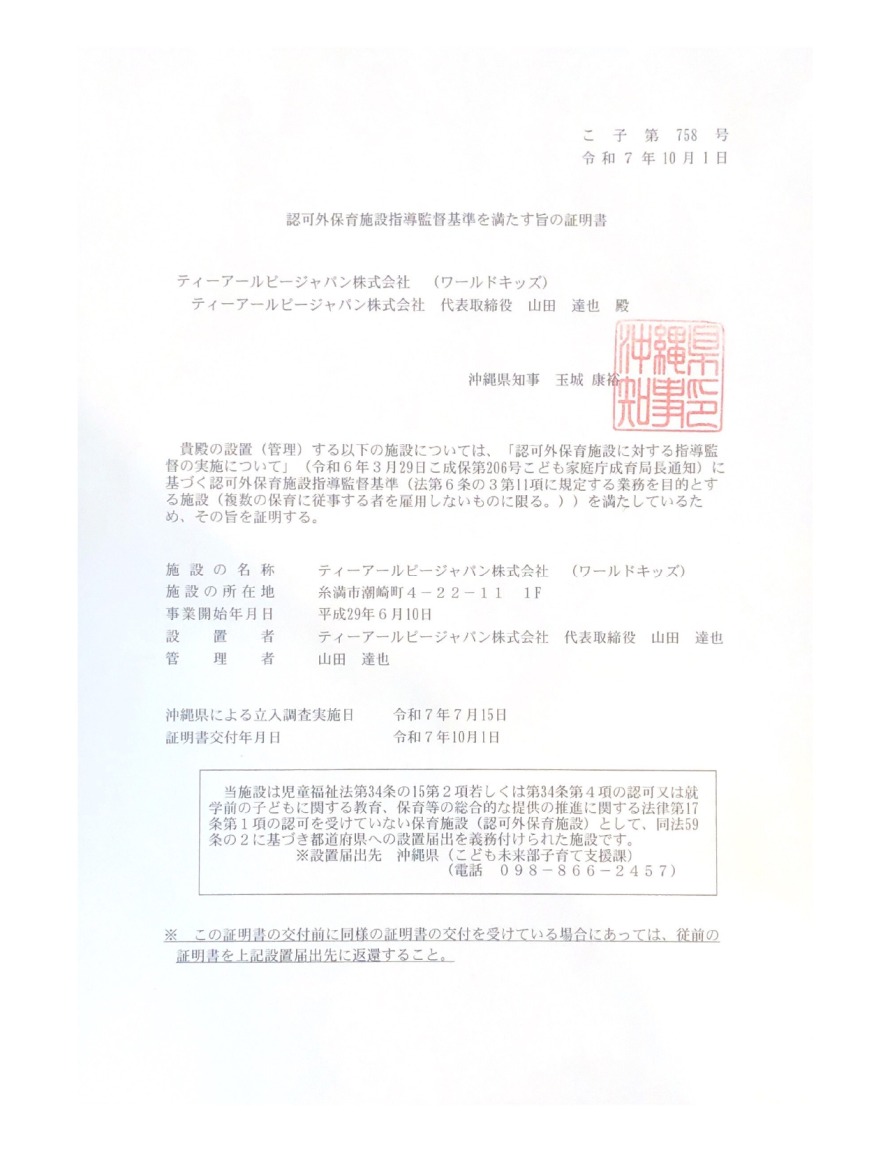 お子さまをお預かりするにあたり「安心・安全」を最も大切に考え、